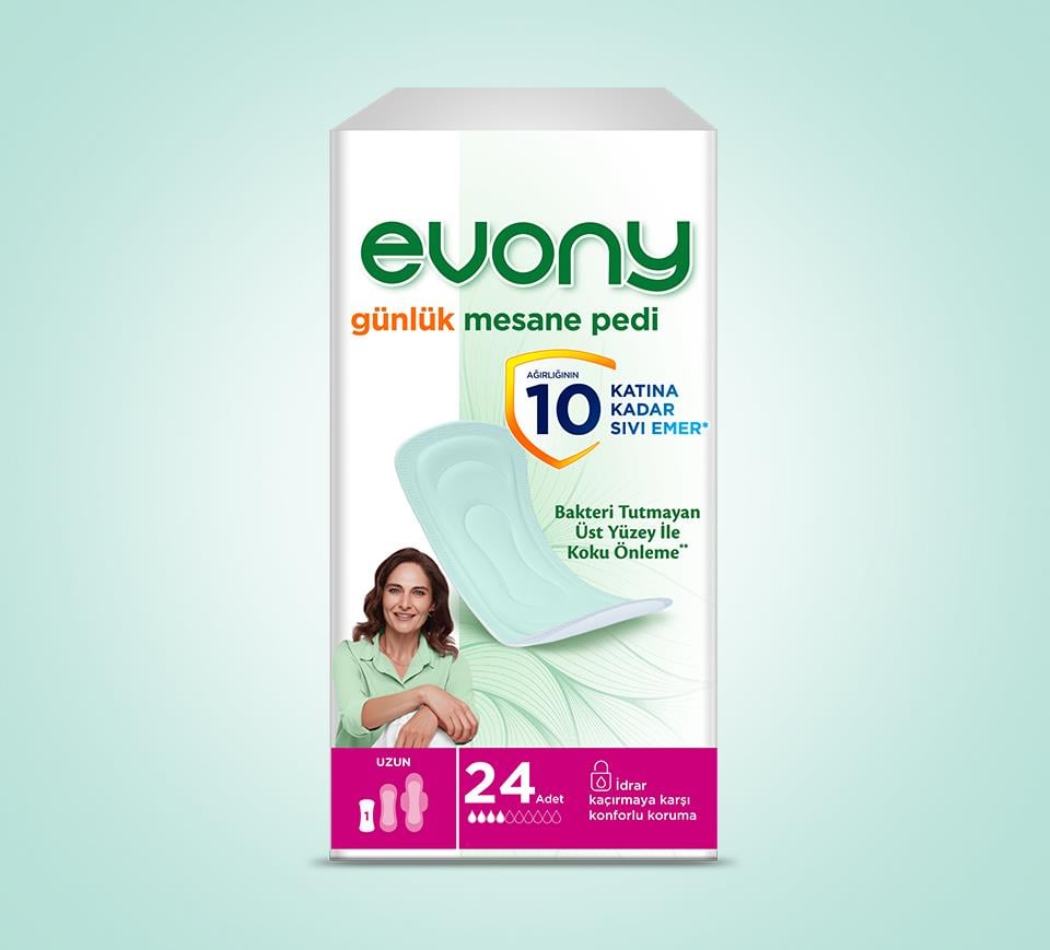 Evony Günlük Mesane Pedleri, günlük hayatınızda beklenmedik idrar kaçırmalarında size konfor ve koruma sağlamak için üretildi.