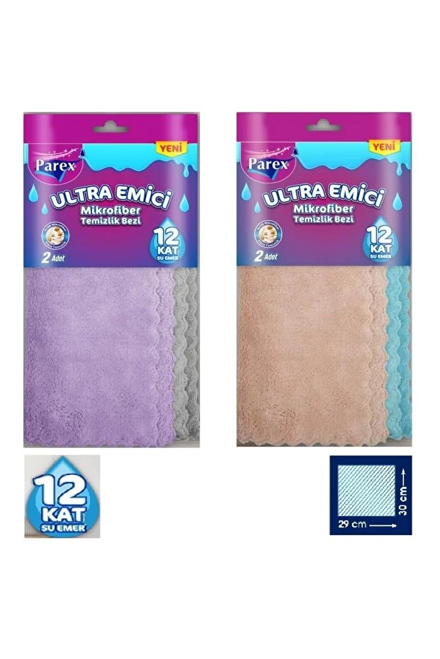 Parex Ultra Emici Mikrofiber Bez 2'li Ürün stok durumuna göre görseldeki iki renkli paketlerden (MAVİ&PEMBE veya MOR&GRİ) biri gönderilecektir.