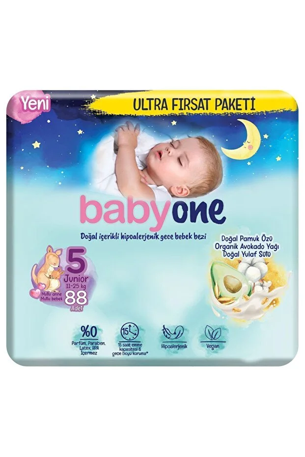 Babyone Yeni Gece Bebek Bezi 5 Beden Junior Ultra Fırsat Paketi 88 Adet