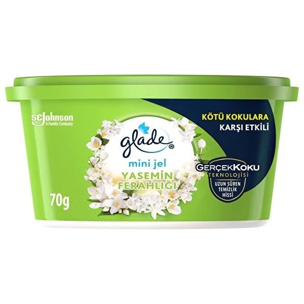 Glade Hava Tazeleyici Jel Mini Jel Yasemin Ferahlığı 70g Ürün Açıklması Glade mini jel kötü kokulara karşı etkili. Glade Mini Yasemin 70GR 1 Paket (1 x 91 g).Kötü kokulara karşı güçlü etki.Dolap, çekmece, araba ve ayakkabılık gibi alanlarda etkili ferahlık.
