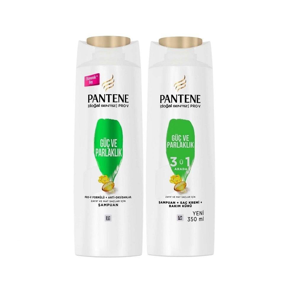 Pantene Strength&Shine Şampuan 600 Ml + 3'ü 1 Arada Şampuan 350 Ml Set Şampuan + Saç Kremi + Bakım Kürü (1087)